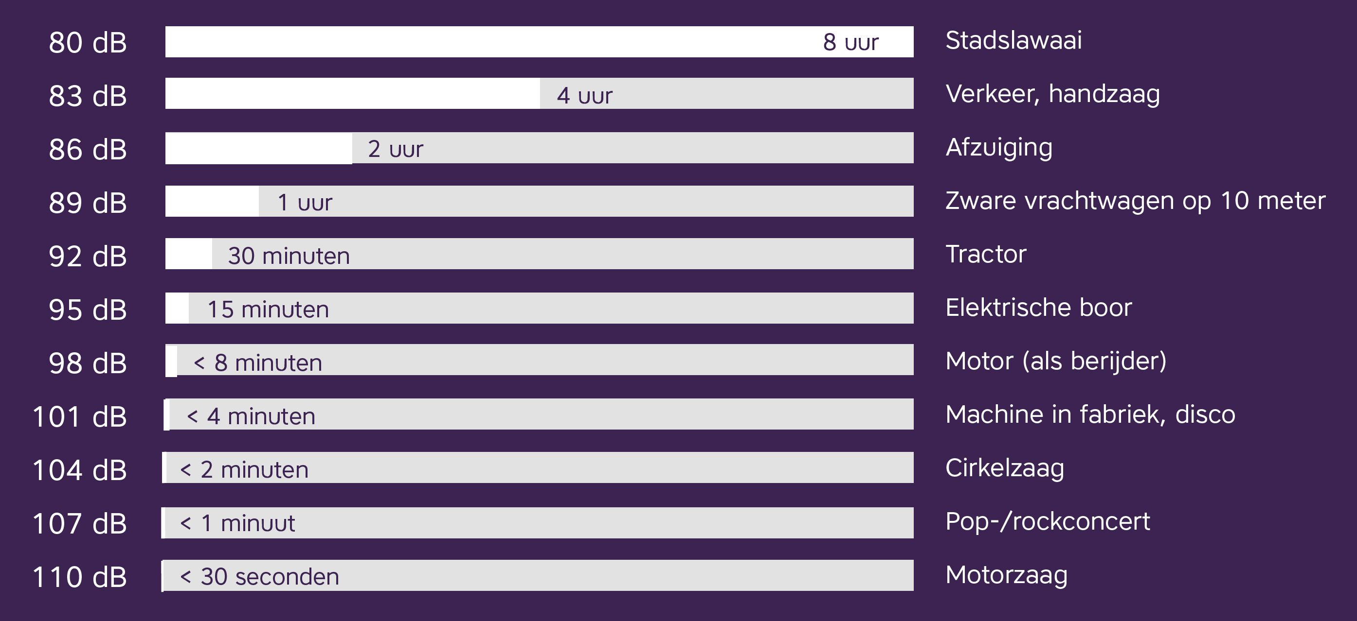 Een verschil van 3dB in geluidsniveau lijkt weinig, maar kan het verschil maken tussen wel of geen gehoorschade. Elke 3dB betekent namelijk een verdubbeling van de geluidsbelasting, halvering van de bescherming en een halvering van de maximale blootstellingsduur. Hierom is het juiste filter erg belangrijk.